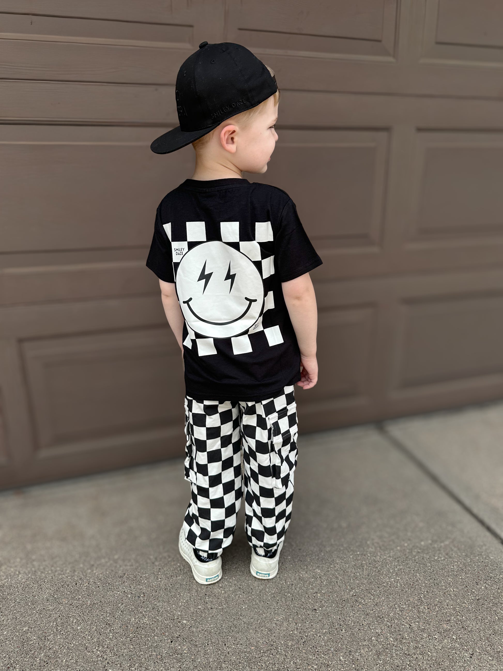 Bring on the good vibes with the Big Mood tee! Crafted from our soft and breathable bamboo blend, this tee keeps your little one comfy while looking cool. With a playful smiley checkered design, it features a subtle front chest graphic and a bold oversized back print that makes a statement.