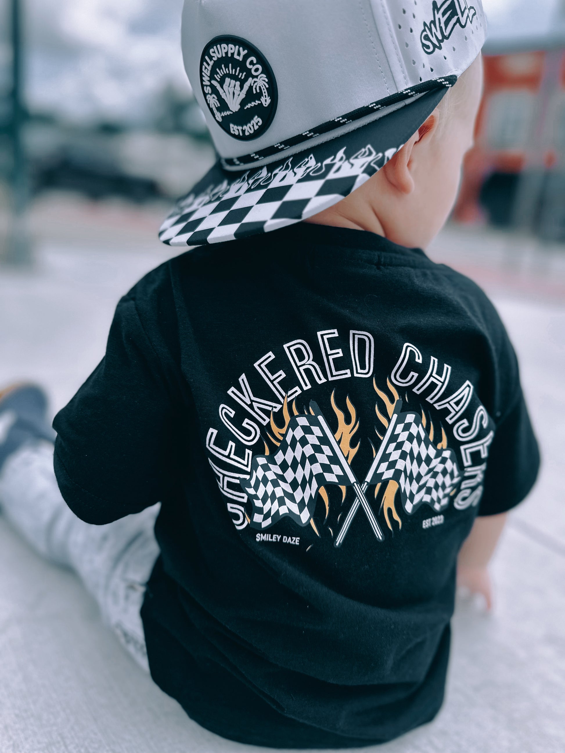 Your little racer will love the Checkered Chaser tee! Made from our signature bamboo blend, this tee is buttery soft, breathable, and built for play. Featuring a small graphic up front and a bold, oversized back graphic with racing vibes, it’s the perfect mix of trendy and playful.