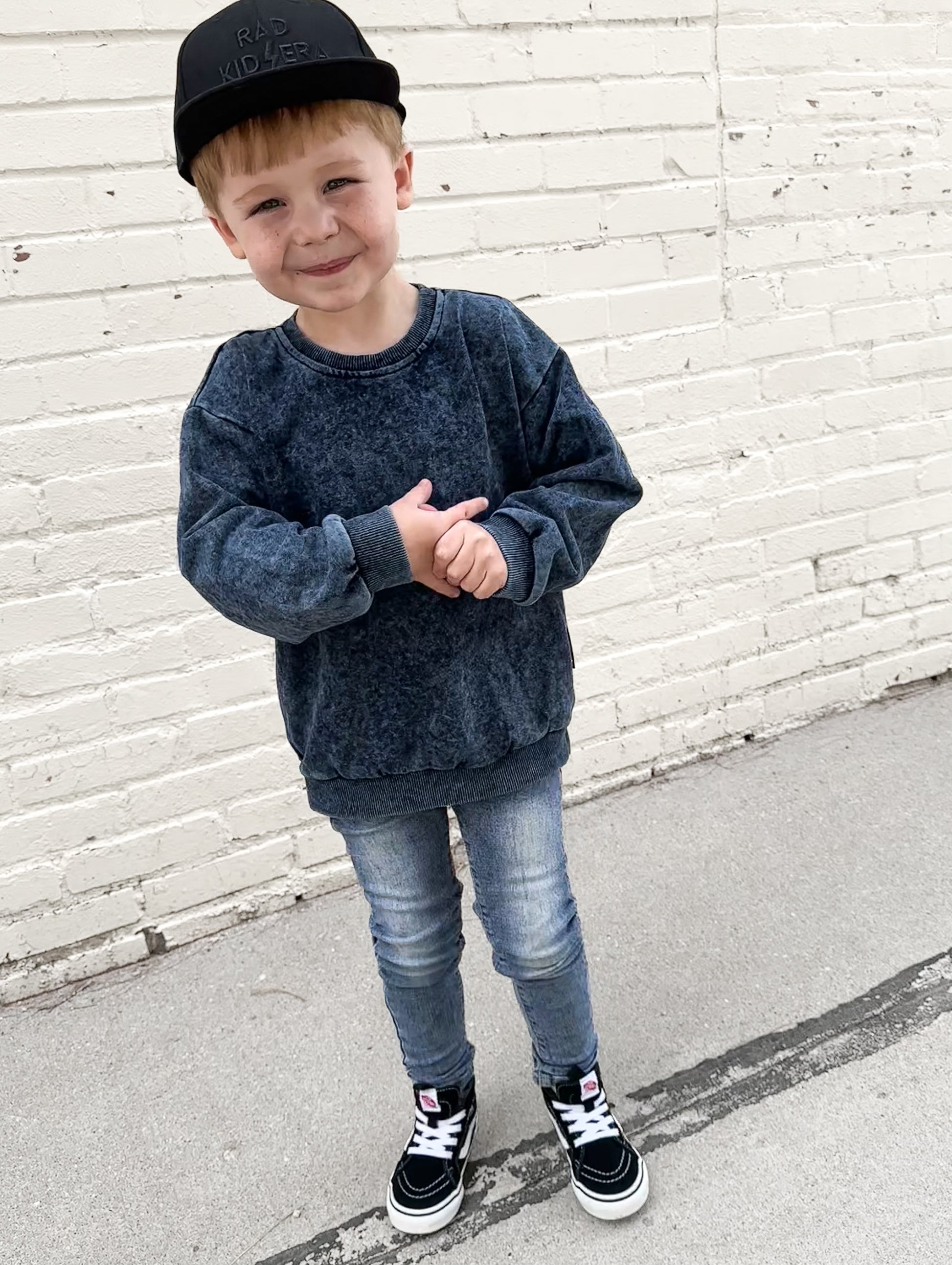 Upgrade your little one's wardrobe with our Denim Wash Crewnecks! These stylish tops feature a unique denim wash design that adds a touch of cool to their outfit. A must-have for any trendy kid!